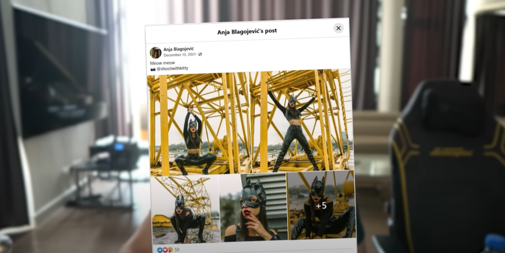 „Anja nju nije mogla da prežali i tu su krenule razne poruke i uznemiravanja na njen račun, gde je nazivala ‘ku*vom’, iskorišćenom, gde je meni govorila da treba da je iskoristim, ponizim… Zato što je ta Anjina opsesija trajala sve vreme dok smo bili zajedno, ja sam dobio instrukcije i bio sam primoran sa njene strane da ugasim ovoj devojci Instagram i gasio sam ga 3 puta, preko nekih mojih kanala. Stalno su i prozivali Anju da ona nju kopira, sa razlogom, zato što ovde možemo da vidimo Anjine slike koje su objavljene 13. decembra 2021. gde je ona obučena kao žena-mačka, a moja devojka je imala sliku kao žena-mačka koja je objavljena 31. oktobra 2021. Takođe imamo slike Anje koja je objavila Laru Kroft 31. oktobra 2022., a moja devojka je tada bila upisana kao ‘Lejdi Kroft’ i imala je sliku gde je bila obučena kao Lara Kroft i ta slika je objavljena 23. novembra 2020. godine“, rekao je on, pa ispričao da je Anja otišla i korak dalje i počela da taguje Milenu na svojim storijima, čemu se on protivio.