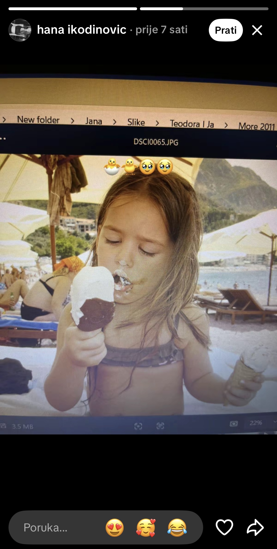 Sada, Hana je podelila uspomenu iz detinjstva, a po njenom opisu očigledno je da je fotografija u njoj probudila posebne emocije. Na pomenutoj slici, pevačicina ćerka je na moru, a vidi se kako drži dva sladoleda i uživa na plaži.