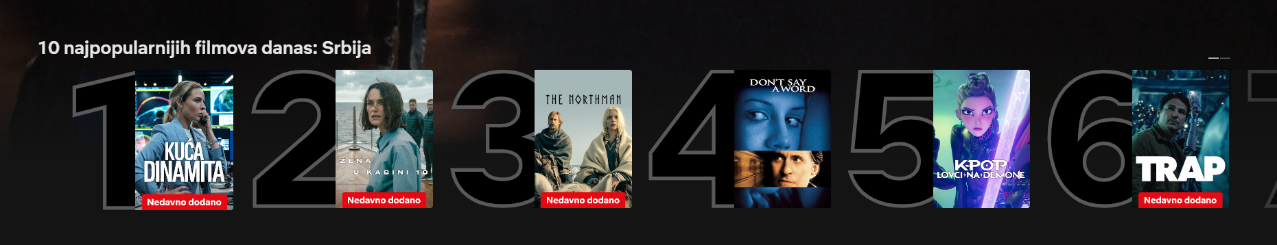 Dok je animirani film „Kpop Demon Hunters“, koji je postao i svetska senzacija i najgledaniji film u istoriji Netflixa, trenutno na petom mestu, „Don’t Say a Word“ se nalazi jednu poziciju više — i to rame uz rame sa mnogo novijim naslovima.