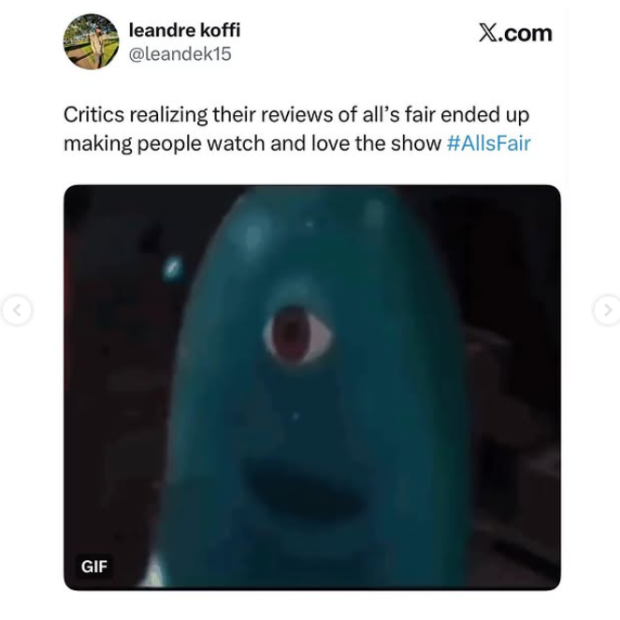 Drugi tvit je nagovestio da su loše kritike zapravo pomogle seriji: „Kritičari shvataju da su njihove recenzije ‘All’s Fair’ zapravo navele ljude da gledaju i da zavole seriju.“