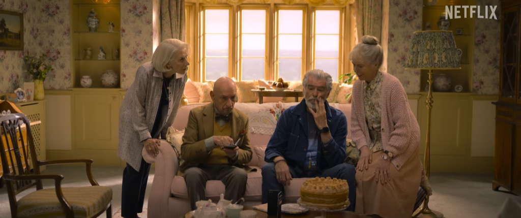 Pirs Brosnan i Helen Miren, koji su nedavno zajedno glumili u Šoutajmovoj drami Mafijaški grad (MobLand), ponovo se udružuju u ulozi penzionisanih prijatelja koji žele da začine svoj život rešavanjem slučaja ubistva. Ova originalna Netflixova komedija imala je kratku bioskopsku distribuciju ovog meseca i pobrala odlične kritike.