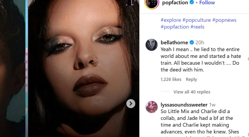 „Mislim… lagao je celom svetu o meni i započeo talas mržnje. Sve zato što nisam htela da… spavam s njim.“, napisala je Bela nedavno ispod objave pevačice Džejd Tirvol koja je istakla da nikada ne bi ponovo sarađivala sa Čarlijem.