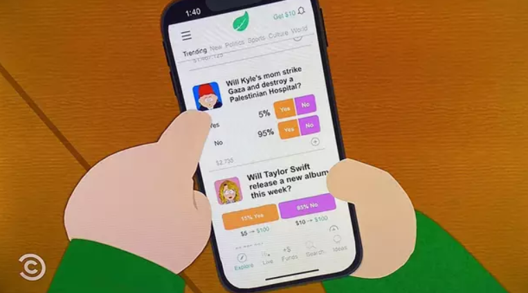 Epizoda, pod nazivom „Conflict of Interest”, emitovana je u sredu (24. septembra). U njoj je Kajl uznemiren jer njegovi drugovi koriste aplikaciju za predviđanje tržišta kako bi se kladili na to da li će njegova majka bombardovati bolnicu u Gazi. Aplikacija omogućava korisnicima da glasaju i ulažu novac na predviđanja.